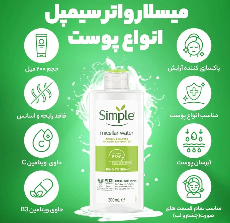 میسلار واتر مناسب انواع پوست حجم 200 میل سیمپل