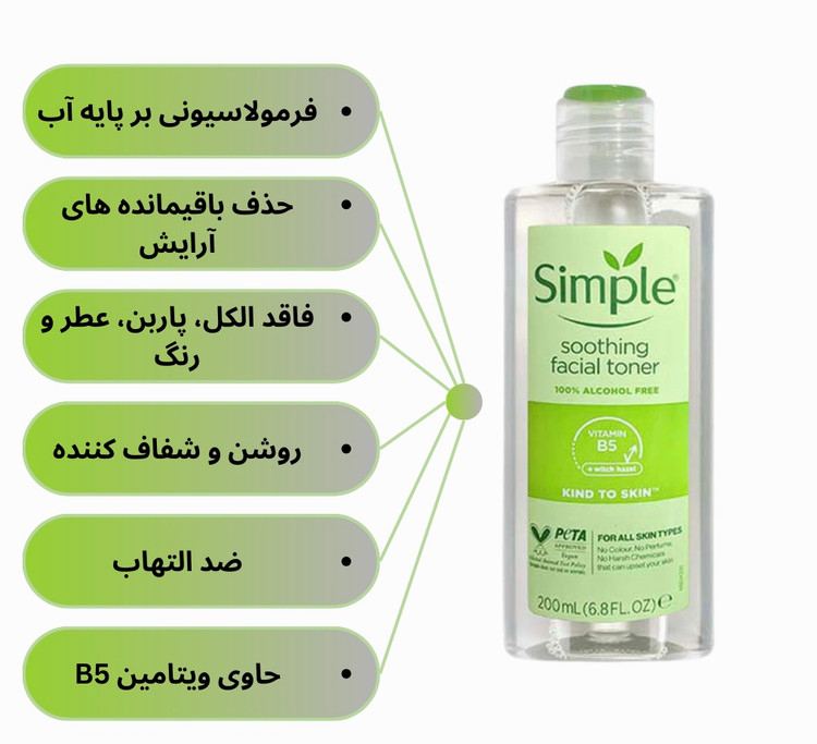 برای نتیجه گیری بهتر از استفاده تونر سیمپل مدل kind to skin کافی است بعد از استفاده یک شوینده مناسب، مقدار کافی از آن را روی پد ریخته و به طور کامل صورت خود را با استفاده از آن پاکسازی نمایید.