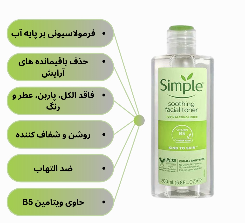 برای نتیجه گیری بهتر از استفاده تونر سیمپل مدل kind to skin کافی است بعد از استفاده یک شوینده مناسب، مقدار کافی از آن را روی پد ریخته و به طور کامل صورت خود را با استفاده از آن پاکسازی نمایید.