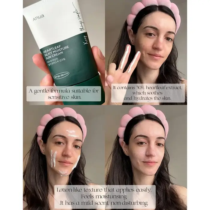 ضد آفتاب Anua Heartleaf Silky Moisture یک ضد آفتاب کرمی است که با SPF 50 و ++++PA از پوست در برابر اشعات UVA و UVB محافظت می کند.همچنین حاوی ترکیبات غنی از آنتی اکسیدان و تسکین دهنده است که مانع ار التهابات پوستی می شود.
