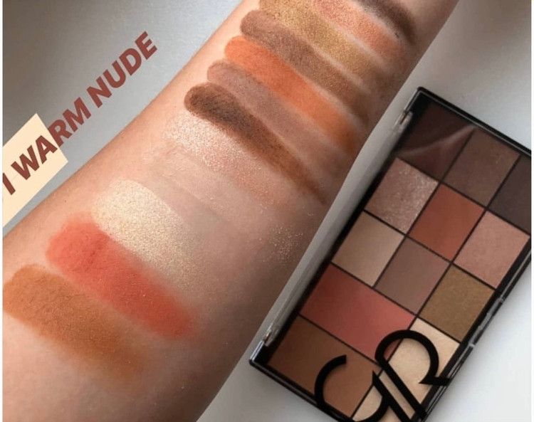 پالت سایه گلدن رز دارای 9 سایه کاملا کاربردی و ملایم و سه رنگ برای صورت (هایلاتر، رژگونه، برنزر)دارد. دارای ماندگاری بالا میباشد. ترجیحا با پرایمر استفاده کنید که کارایی عالی این سایه 12 تایی گلدن رز را دریابید.