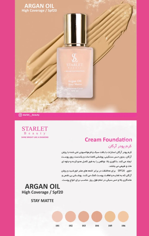 کرم پودر پمپی استارلت مدل روغن آرگان /