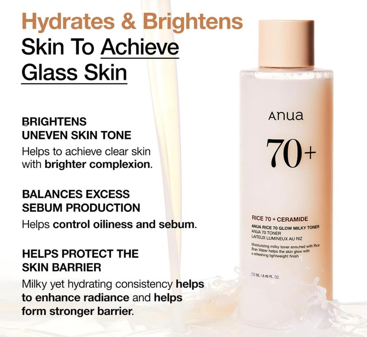 اگر به دنبال تونری هستی که همزمان پوستت رو آبرسانی کنه و شفافیتش رو افزایش بده، تونر برنج آنوا Anua Rice 70 Glow Milky Toner یکی از بهترین انتخاب هاست! این تونر کرهای با ترکیبات مغذی مثل عصاره برنج، نیاسینامید، ویتامین C و هیالورونیک اسید، علاوه بر آبرسانی، باعث کاهش لک های پوستی، افزایش لطافت و یکدست شدن رنگ پوست می شه.