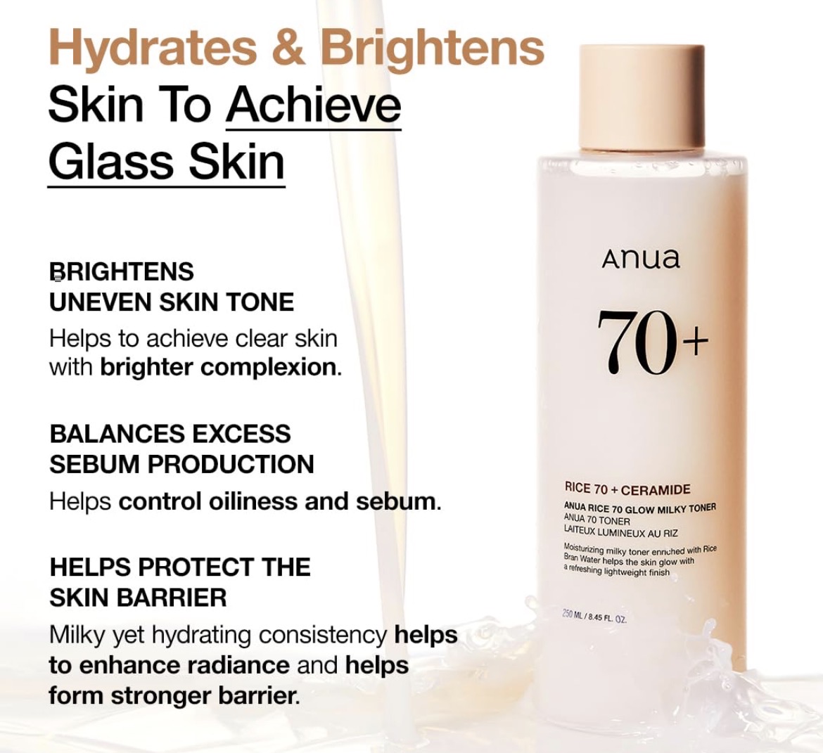 اگر به دنبال تونری هستی که همزمان پوستت رو آبرسانی کنه و شفافیتش رو افزایش بده، تونر برنج آنوا Anua Rice 70 Glow Milky Toner یکی از بهترین انتخاب هاست! این تونر کرهای با ترکیبات مغذی مثل عصاره برنج، نیاسینامید، ویتامین C و هیالورونیک اسید، علاوه بر آبرسانی، باعث کاهش لک های پوستی، افزایش لطافت و یکدست شدن رنگ پوست می شه.