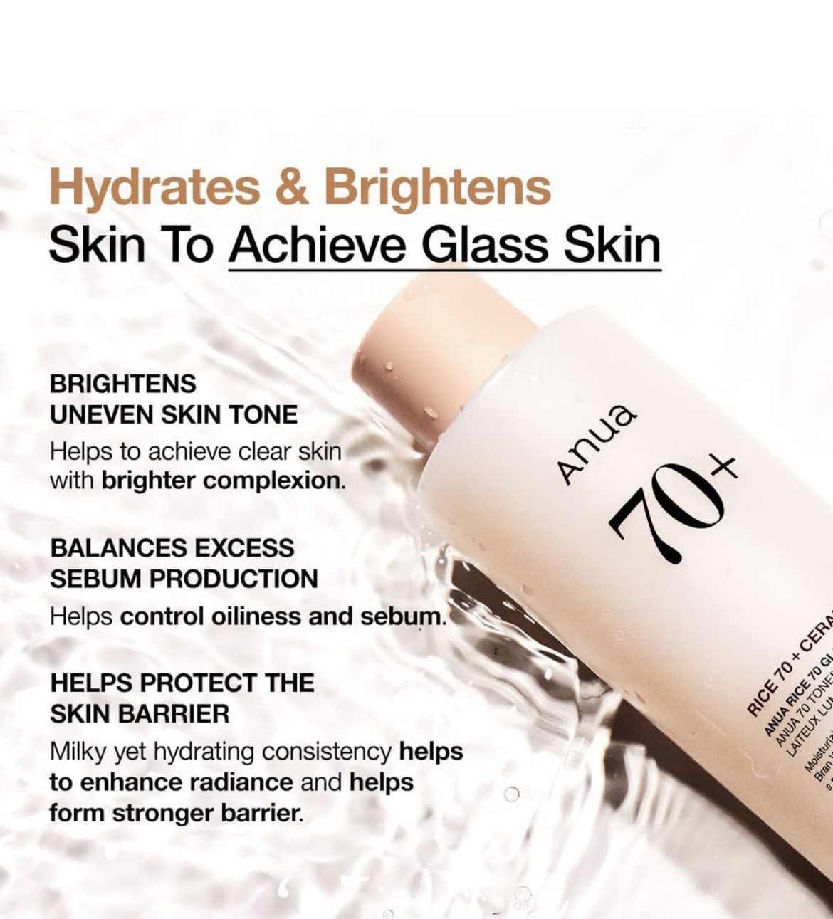 این تونر سبک و شیری با ۷۰٪ عصاره برنج و سرامید فرموله شده تا پوست را عمیقاً آبرسانی کرده، شفافیت و درخشش طبیعی آن را افزایش دهد.