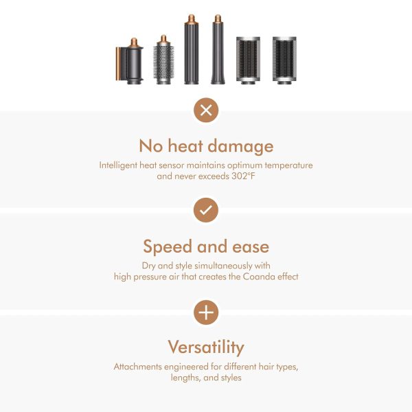 با این سشوار و حالت دهنده مو دایسون Dyson Airwrap Complete Long همه کاره که دارای سری های متنوع است شما می توانید بدون آسیب رسیدن به موها، موارد زیر را به راحتی انجام دهید.