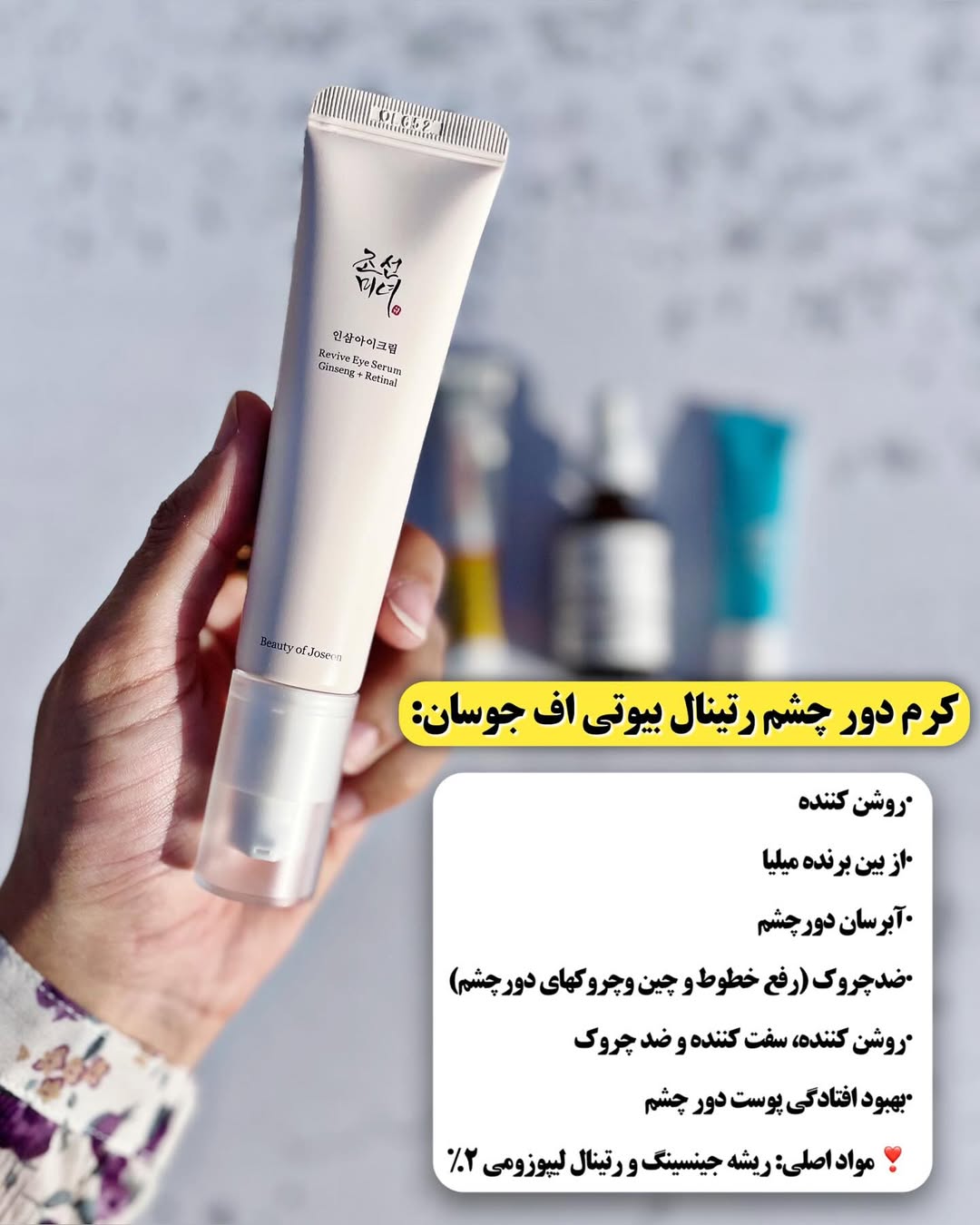 دور چشمبیوتی اف جوسان: •حاوى جينسنگ قرمز براى بهبود گردش خون وكاهش تيرگیزيرچشم •غنى از رتينول ملايم براى بازسازى پوست و كاهش خطوط ريز. بافت سبك و زودجذب، مناسب براى استفاده روزانه. مناسب براى افراد با چین وچروكهاى سطحى وتيرگی ومستعد ميليا دورچشم همه کاره گارنیر،چرا میگیم یه دور چشم کامله؟ چون هم روشن کننده هست هم ضدلکه هم جوانسازه و هم مرطوب کننده چون از ترکیباتی ساخته شده که حاوی ۴٪ نیاسینامید /ویتامین سی/پودر موز/کافئین دور چشم کافیین اوردینری : فرمولاسیون فوققوی خود سیاهی دور چشم را محو میکنه نشانههای خستگی و پف دور چشم را نیز به خوبی رفع میکنه این سرم میزان گردش خون در اطراف چشم را افزایش داده و پوست این ناحیه را شاداب میکنه. دورچشمنوتروژینا: دارای خاصیت آبرسانی فوق العاده بالا برای اطراف چشم هر چقدر شما پوست دور چشمتون وابرسانی کنید دیرتر دچار چروک میشه و از تیرگی و پف هم جلوگیری میکنه. دورچشم بیوتی اف جوسان:۱/۲۹۰ دورچشم گارنیر:۷۵۰ دورچشم کافئین اوردینری : ۱/۲۰۰ دورچشم نوتروژینا:۳۹۵ #دورچشم_بیوتی_آف_جوسان