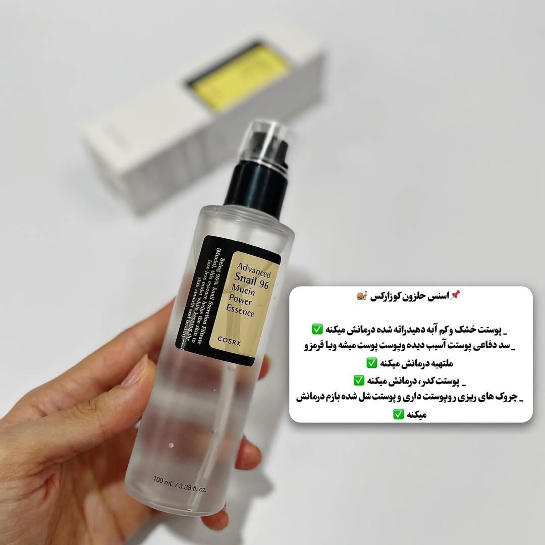 موسین حلزون کوزارکس حاوی مخاط ارگانیک حلزون سیاه هست.۹۶٪ از ترشحات حلزون تشکیل شده بافت خیلی خیلی سبکوزود جذب داره که باعث درخشش طبیعی پوست میشه این محصول از پوست در مقابل از دست دادن رطوبت و دهیدراته شدن محافظت میکنه وهمچنین قابلیت ارتجاعی پوست را افزایش میده مخاط حلزون با ذخیره سازی رطوبت موجب ترمیم وتسکین قرمزی وحساسیت پوست میشود غنی از هیالورونیک اسید که رطوبت را در لایه های زیرین پوست حبس میکنه وعمیقا پوست را آبرسانی میکنه •حاوی ۹۶٪ مایع موسین حلزون •ترمیم کننده و جوانساز •بعد از استفاده نیاز به مرطوب کننده دارد توضیحات تکمیلی: •فاقد تست حیوانی •کاهش قرمزی پوست •ترمیم پوست •سفت کننده وکلاژن ساز •رطوب رسان و آبرسانی عمقی پوست •بهبود بافت پوست •شفاف کننده پوست •کاهش خطوط وچروک پوست •سبک زود جذب بدون حس چسبندگی •التیام بخش وتسکین دهنده •فاقد پارابن •حجم : ساخت: کُره مناسب انواع پوست ترکیبات: •حاوی ۹۶٪ موسین حلزون: تغذیه کننده قوی و جذب سریع •آلانتوئین، پانتنول: التیام بخش ، کاهش قرمزی و حساسیت هیالورونیک و بتائین: آبرسانی عمقی وطولانی مدت احیا کننده ودرخشان کننده پوست جوانساز وبهبود خاصیت ارتجاعی پوست طرز استفاده: اسنس ترشحات حلزون کوزارکس بهترین زمان استفاده از اسنس در ابتدای روتین و بعد از شستشو پوست روی پوست نم دار میباشد، با توجه به این که این سرم به صورت فوری جذب پوست میشود، میتوانید بر روی آن از انواع اکتیو، تونر و کرم ها استفاده کرد. در پایان حتما از مرطوب کننده استفاده کنید.