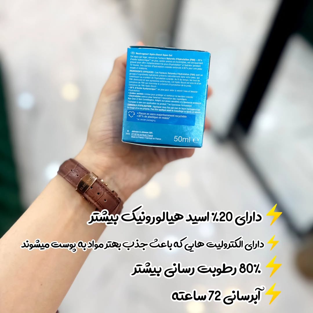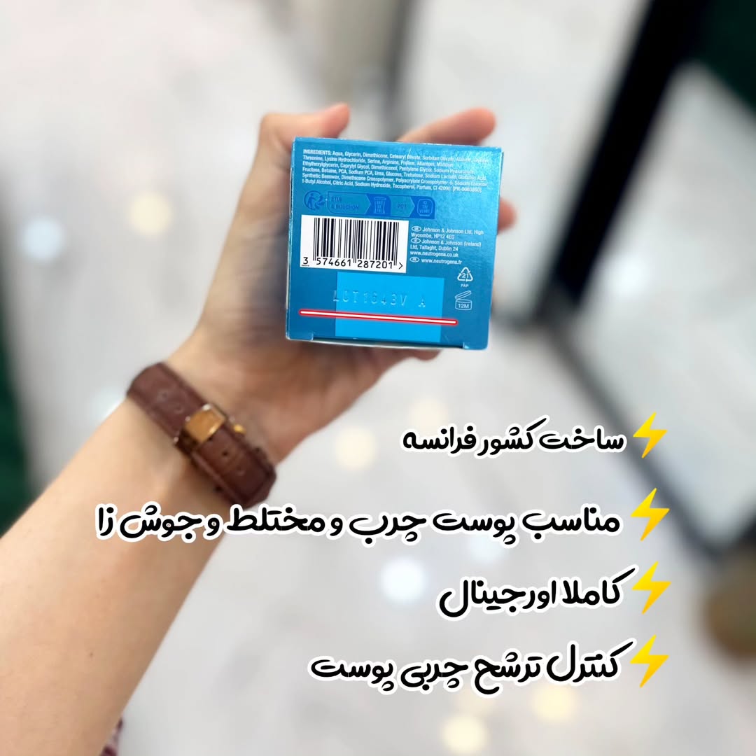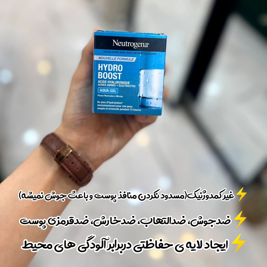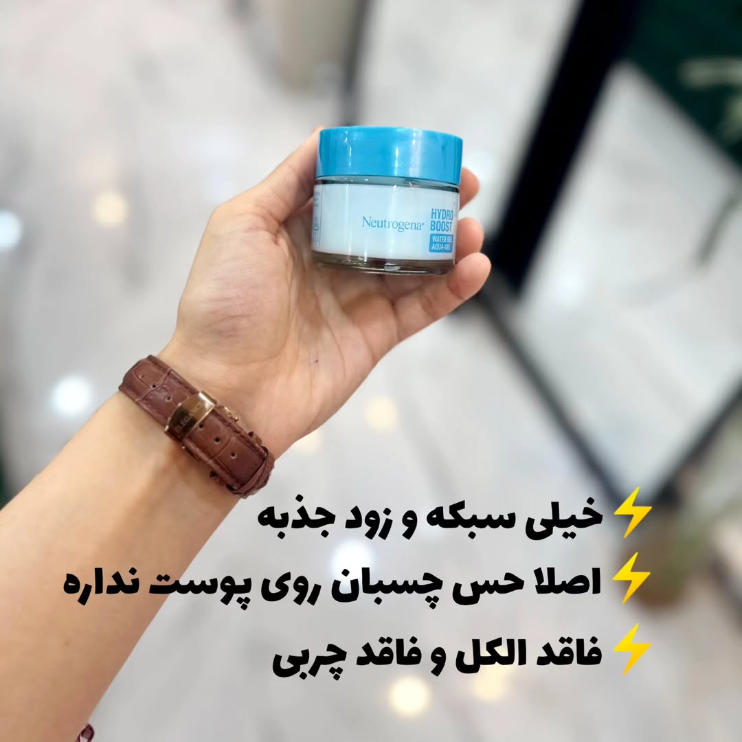 واتر ژل آبرسان نوتروژینا : ¦ ورق بزنید تست اصل بودن کالا رو ببینید.¦ . کنترل کننده ترشح چربی پوست . دارای بافت ژلی کاملا سبک و زود جذب صلا حالت چسبان روی پوست ندارد . 72 ساعت آبرسانی داره برای پوست . جلوگیری از چین و چروک پوست . ترکیبات جوش زا ندارد . هشتاد درصد بیشتر رطوبت رسانی میکنه پوستت و . حاوی هیالورونیک و گلیسیرین . دارای ترکیبات ترمیم کننده . منافذ پوست و اصلا مسدود نمیکنه . ضدالتهاب و ضد قرمزی و ضد جوش فاقد الکل و چربی و پارابن یجاد لایه ی حفاظتی در برابر آلودگی هایی محیطی . جلوگیری از کدری و خستگی پوست . آبرسان و مرطوب کننده قوی واتر ژل آبرسان صورت نوتروژینا مدل هیدروبوست آبرسان قوی پوست بوده که به تقویت و افزایش استحکام پوست کمک میکندین محصول در از بین رفتن و پر شدن چین و چروکهای سطحی پوست موثر بوده و پوست را شفاف و ترمیم میکند. به خاطر بافت ژلهای که دارد خیلی زود جذب شده و احساس سبکی بروی پوست دارد. آبرسان واتر ژل فاقد الکل بوده، بنابراین اصلاً باعث خشکی پوست نمیگردد. همجنین میزان انعطافپذیری پوست را افزایش داده و از پیری و کدری پوست جلوگیری میکند. مناسب پوست : چرب و مختلط و جوش زا : ساخت فرانسه